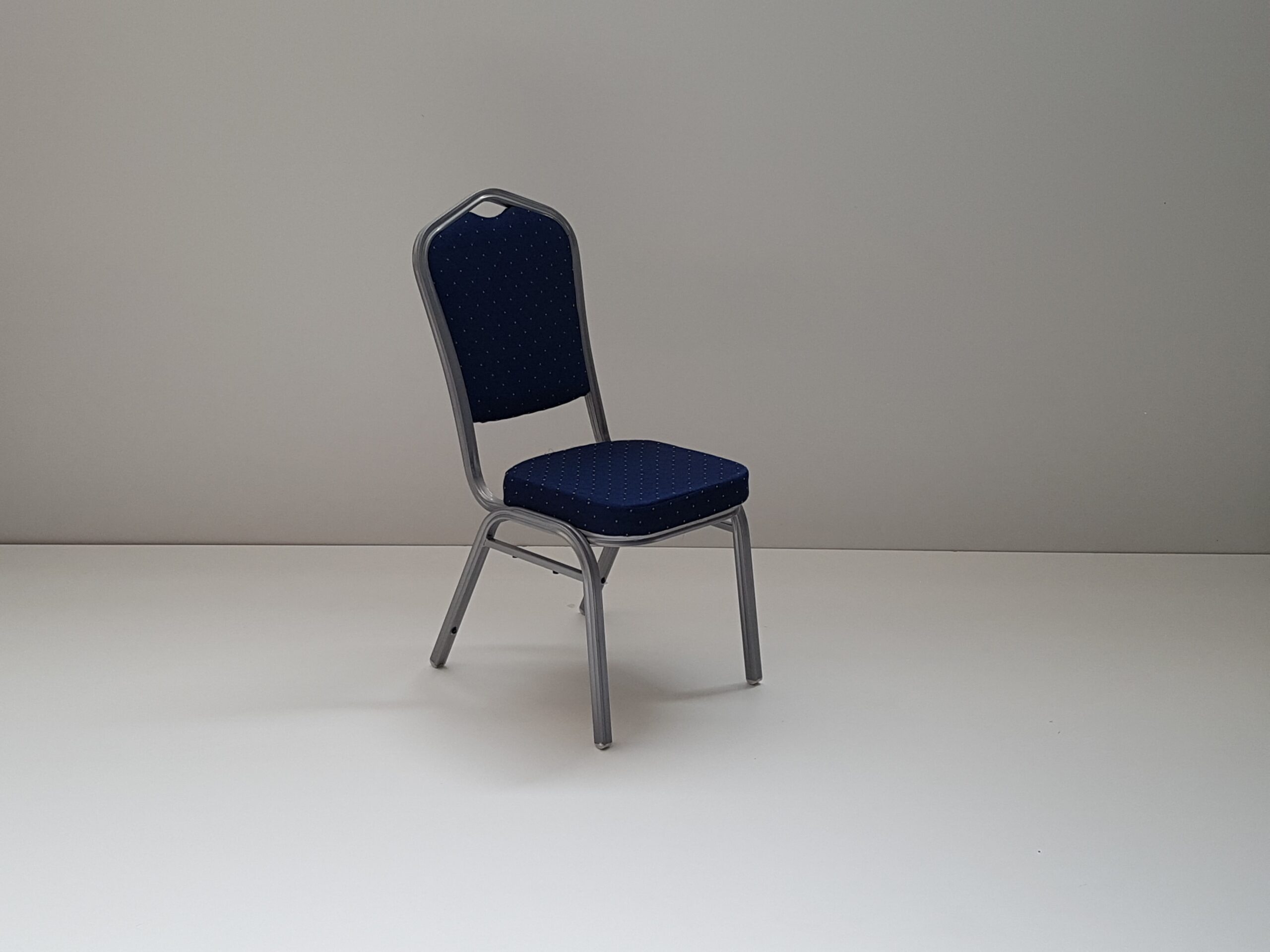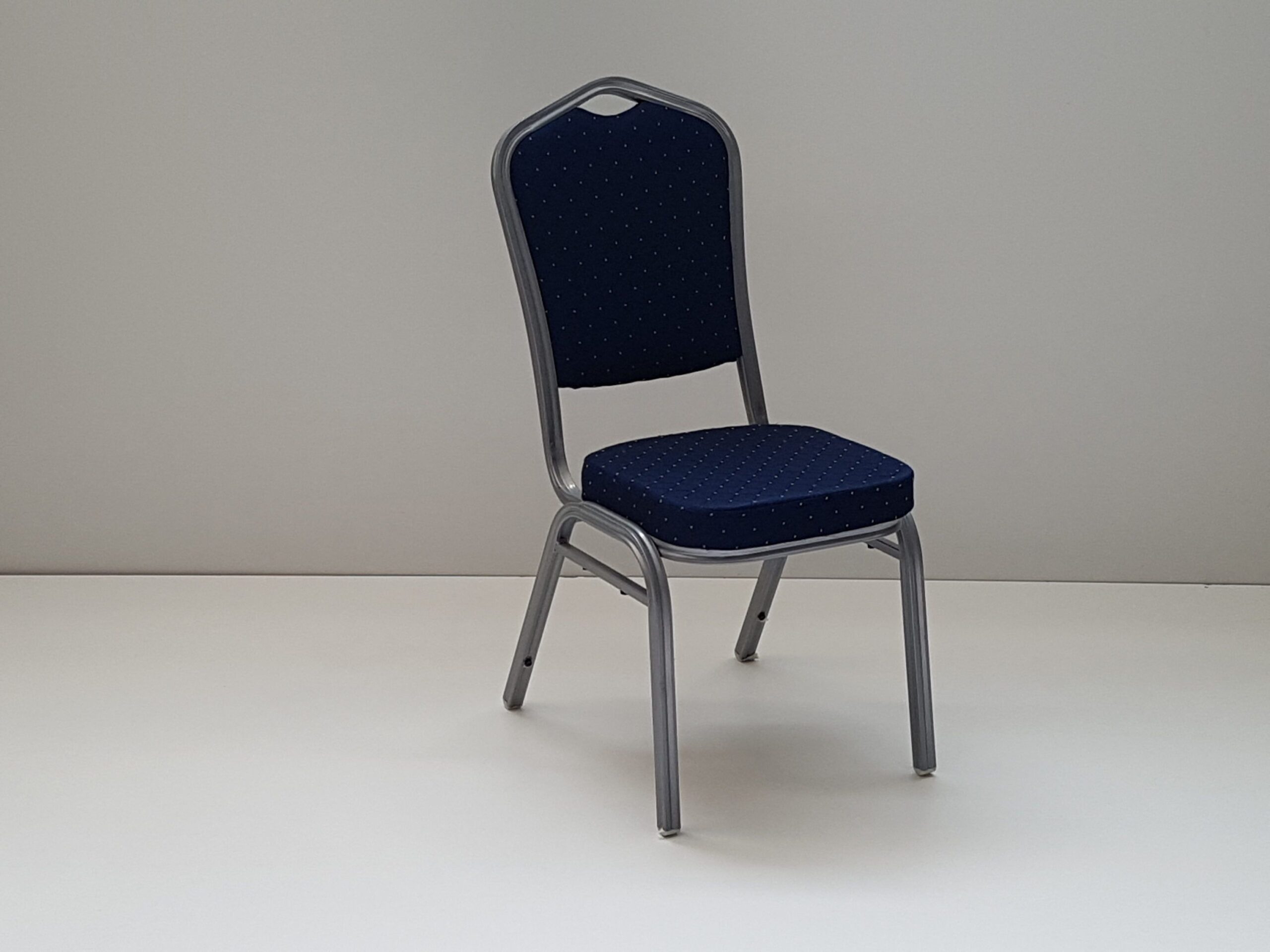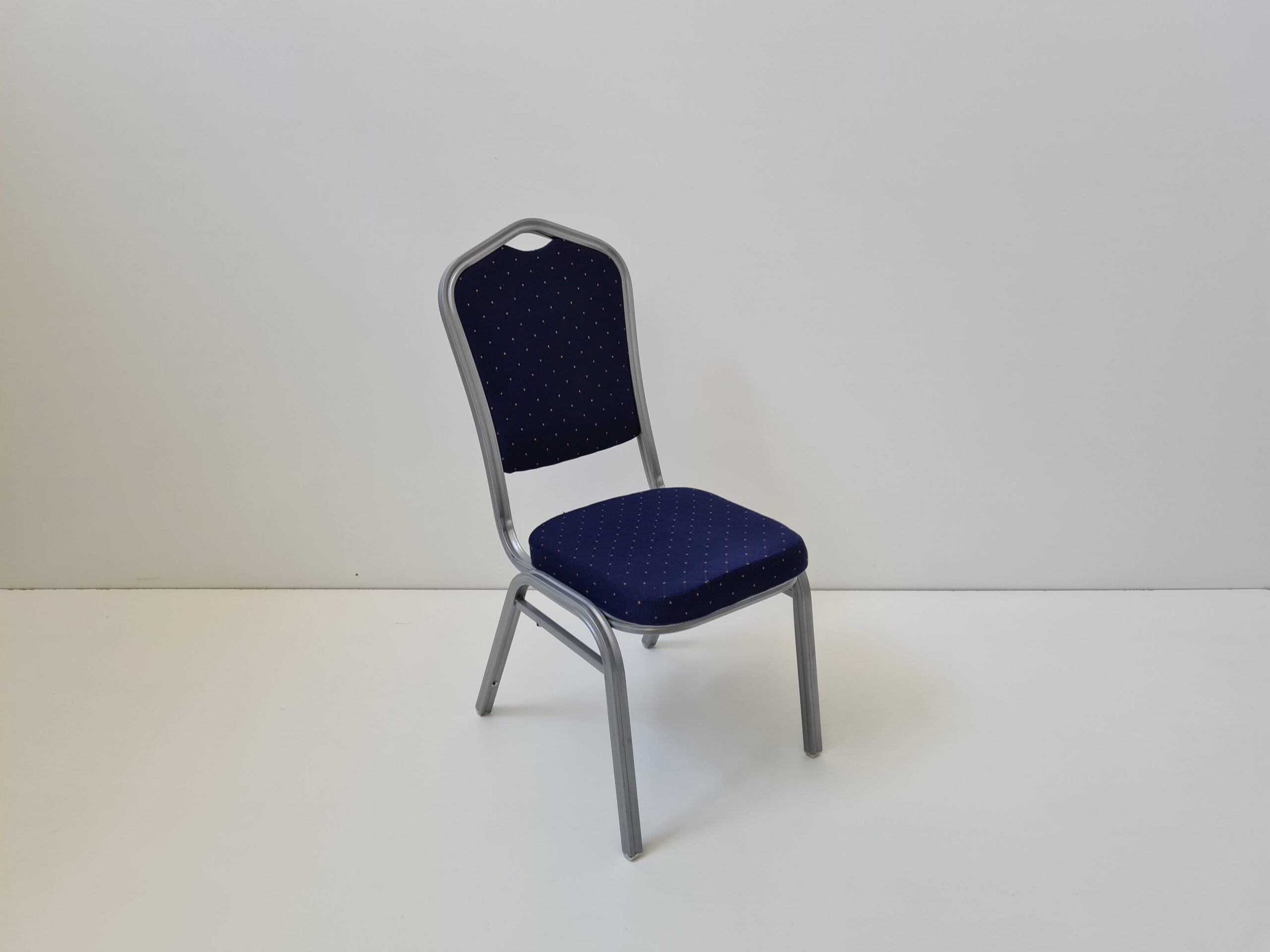 Η κλασσική συνεδριακή καρέκλα. Σιδερένιος σκελετός σε ασημί χρώμα & μπλε υφάσματα με αφρώδες υλικό σε κάθισμα & πλάτη.