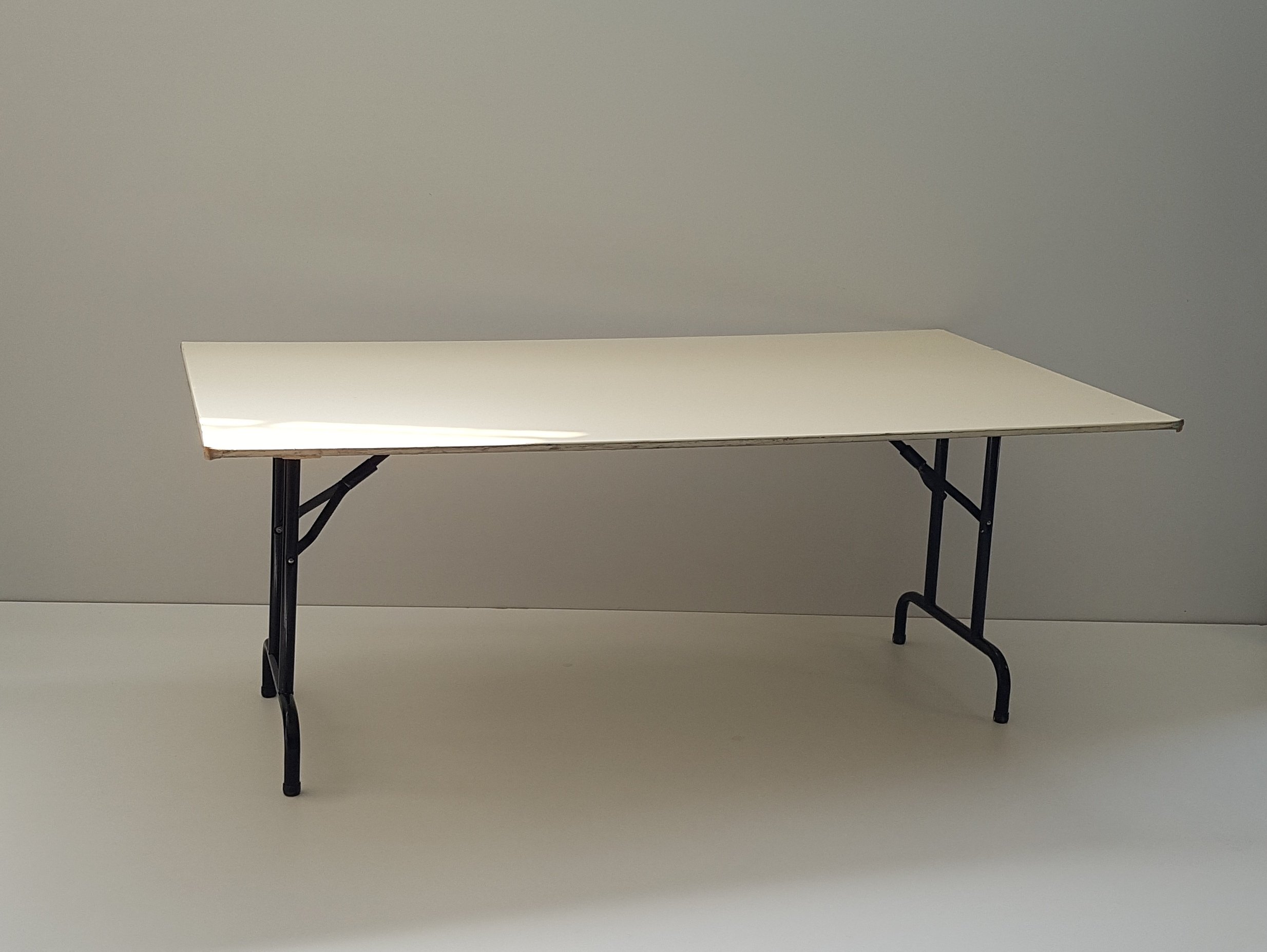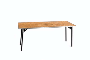| Μακρόστενο ξύλινο τραπέζι με σιδερένιο σκελετό & πόδια που κλείνουν για πιο εύκολη μεταφορά & αποθήκευση |